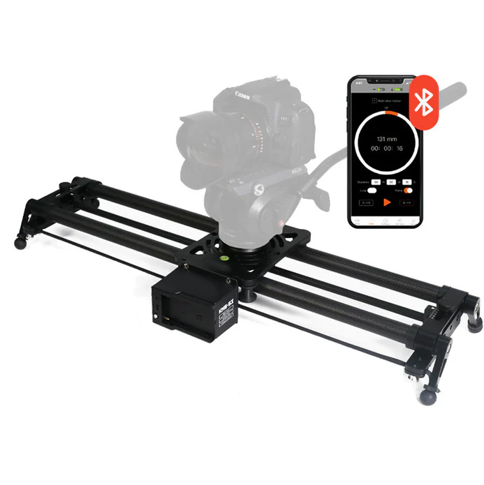Wirelessly control your smooth camera movements when using rigs weighing up to 17 lb with the belt-driven  Carbon Slider with Wireless Motorized System.. This kit combines a 47.2″ P1 carbon fiber slider and a KMS-S3 motor to create a remotely controllable slider kit. The lightweight and durable slider supports up to 22 lb, and the S3 motor and carriage can support rigs up to 17 lb. Rent slider in Kozhikode, Calicut camera slider rental